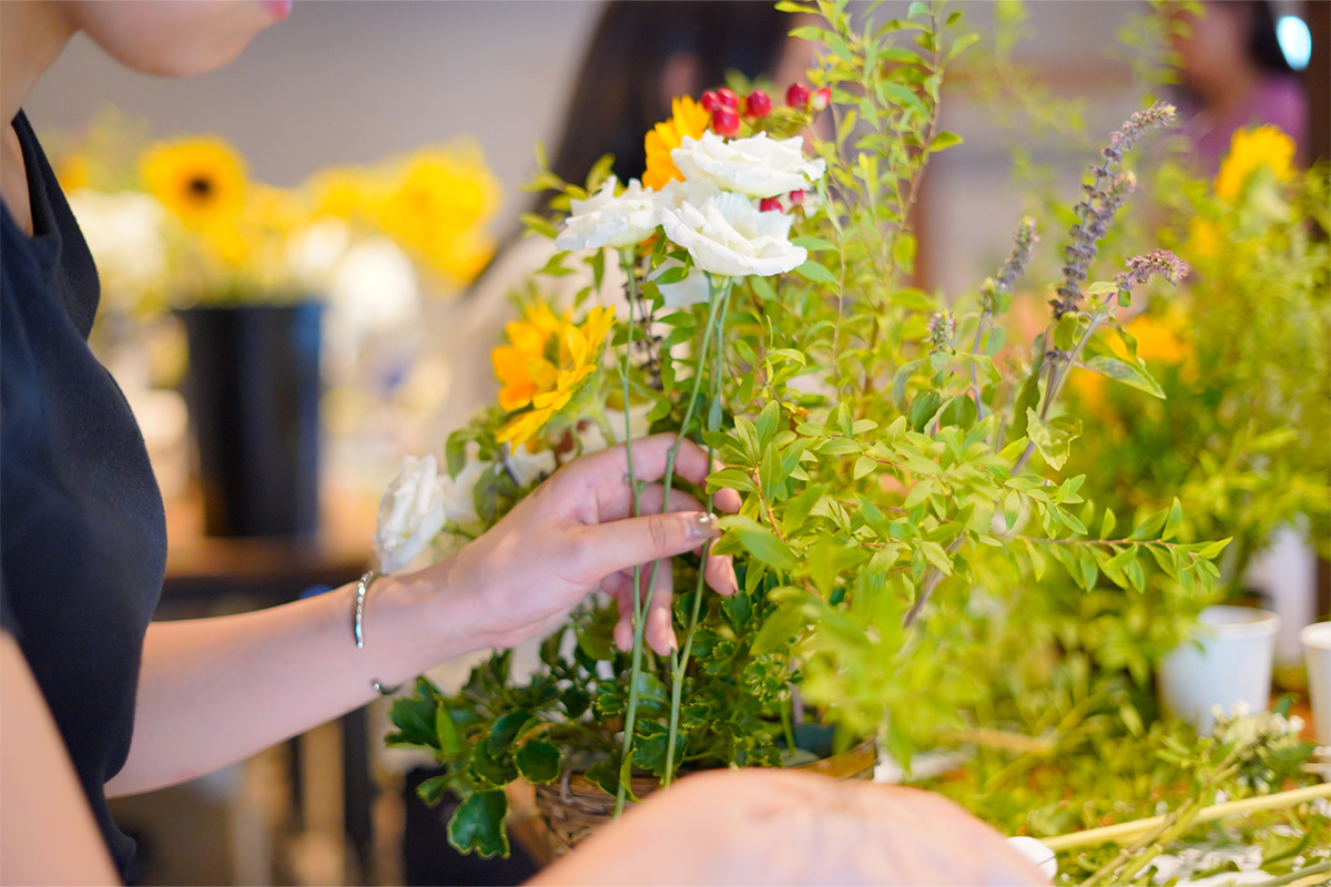 生け花、洋花、ドライフラワーなど、様々なスタイルのアレンジメントを学びながら、自身のセンスを磨けます。
