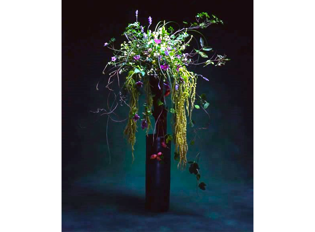 花そのものだけでなく、展示される空間そのものを“作品”として構成します。