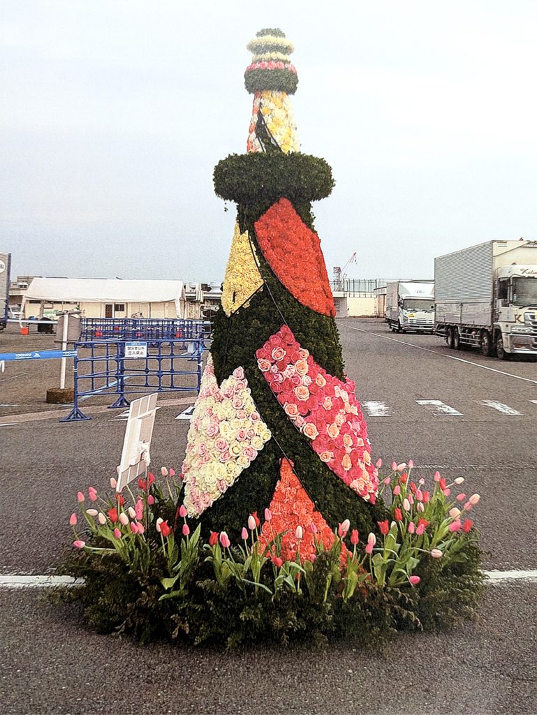 5メートル四方の額にプリザーブドフラワー(枯れない花)の看板を立てる